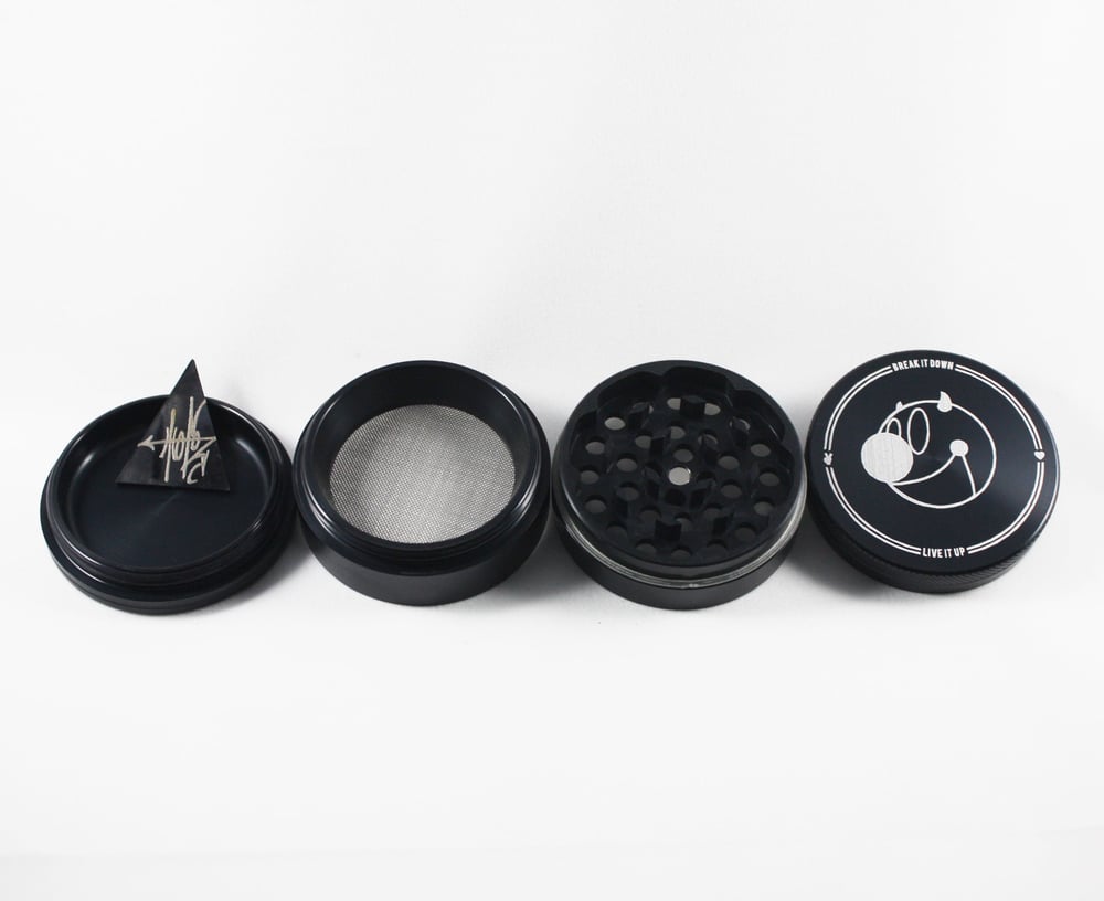 Stay grinding friends. Dedicated to the ones who grind all day, all night- this 4 piece grinder with screen/pollen catcher and scraper can keep up.